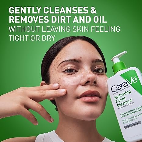 CeraVe Hydrating Facial Cleanser is a dermatologist-developed face wash designed to gently cleanse the skin without stripping away its natural moisture. This creamy, non-foaming formula effectively removes dirt, oil, and impurities while keeping the skin soft, smooth, and hydrated. It is specially formulated for normal to dry skin, making it perfect for daily use.